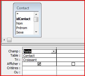 | 19 | Création d'une liste déroulante sur le champ poste. - Enregistrer la table (ainsi le champ poste existe officiellement) |